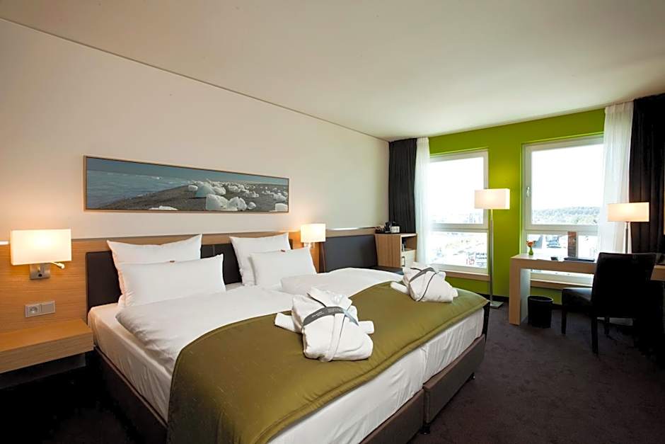 Bright room with free wired internet. Modern, elegant suite with panoramic views of the Kiel Fjord. Some have a French balcony.